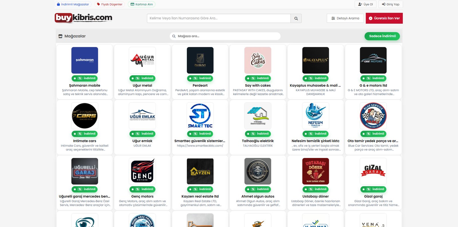 BuyKibris, ilan ve pazaryeri mantığında çalışan; paketleme, ilan yönetimi, kullanıcı/rol yönetimi ve içerik yönetimi modüllerini tek panelde toplayan PHP + MySQL tabanlı web yazılımıdır. Bootstrap ile mobil uyumlu arayüz ve yönetim paneli içerir.