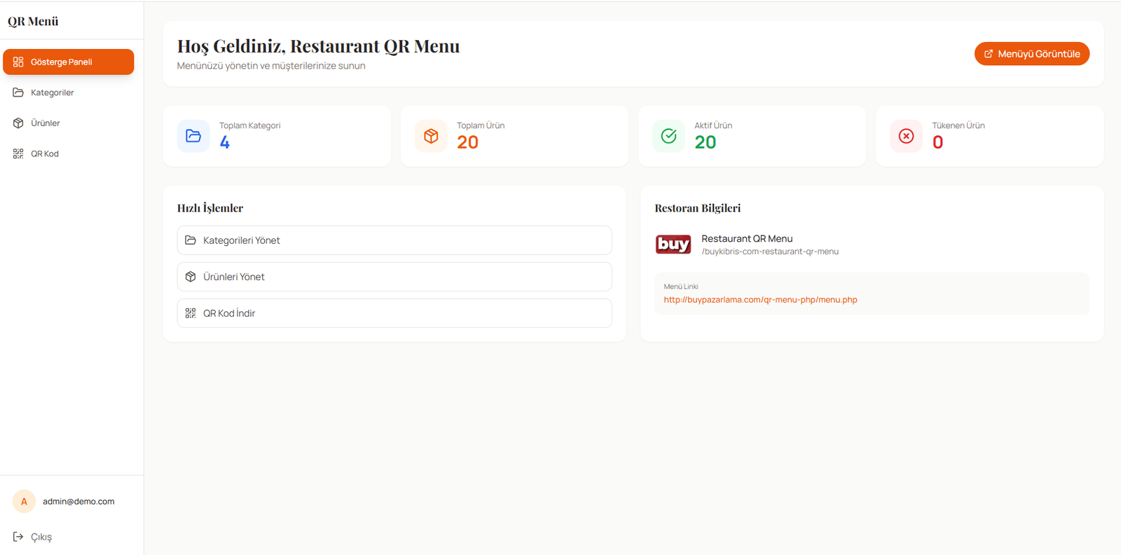 QR Menü & Restoran Yönetim Sistemi, restoranların menülerini QR kod ile temassız şekilde sunmasını ve tüm içerikleri admin panel üzerinden kolayca yönetmesini sağlayan PHP/MySQL tabanlı bir web uygulamasıdır.