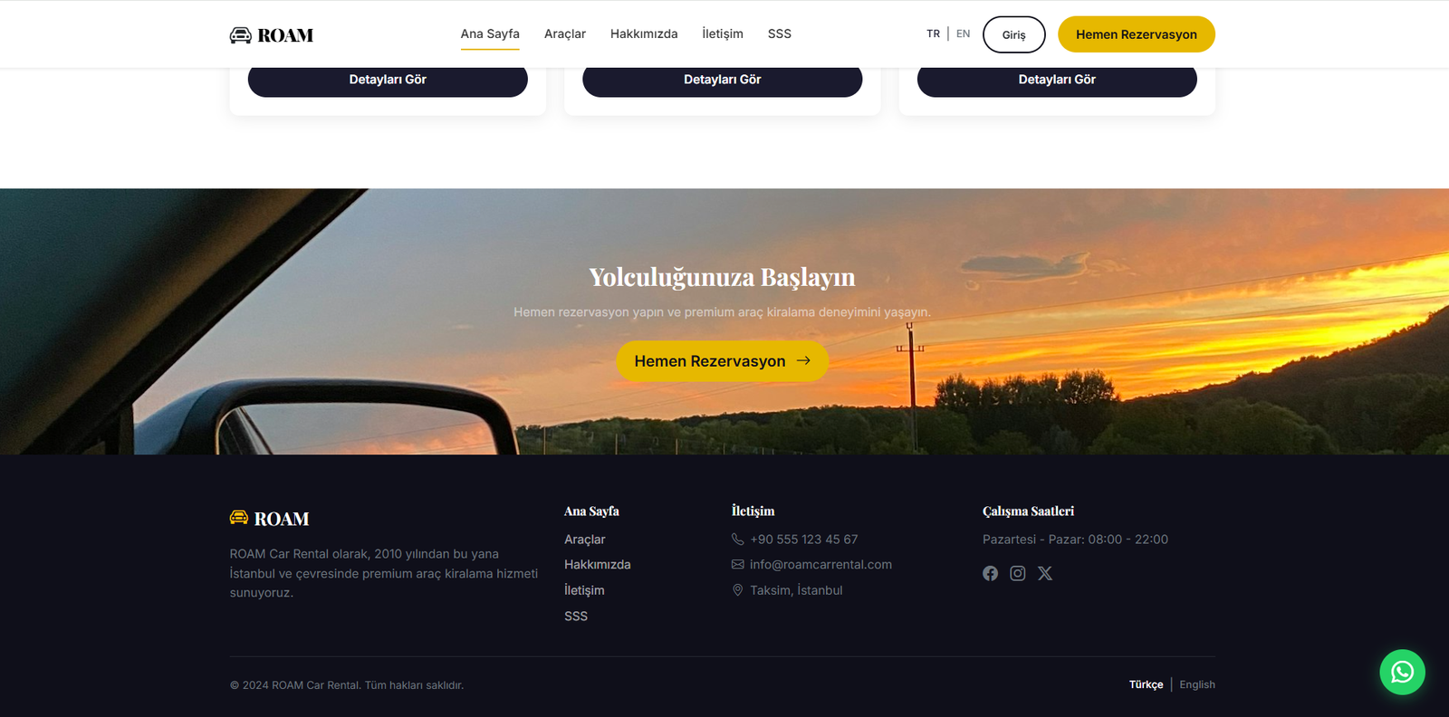 Modern & Mobil Uyumlu Ön Panel: Hızlı arama/filtreleme ile araçları kolayca bulma deneyimi.