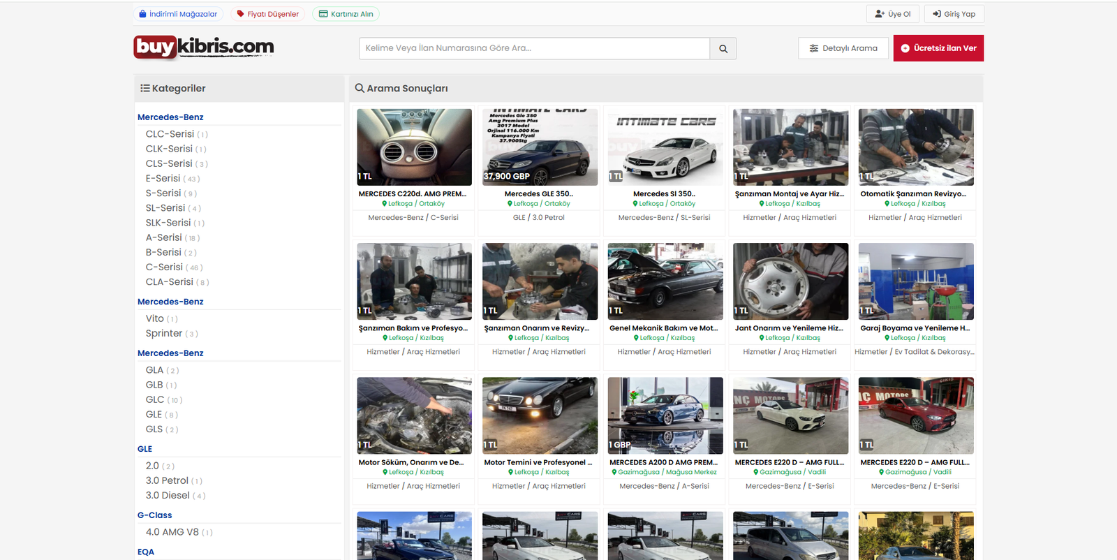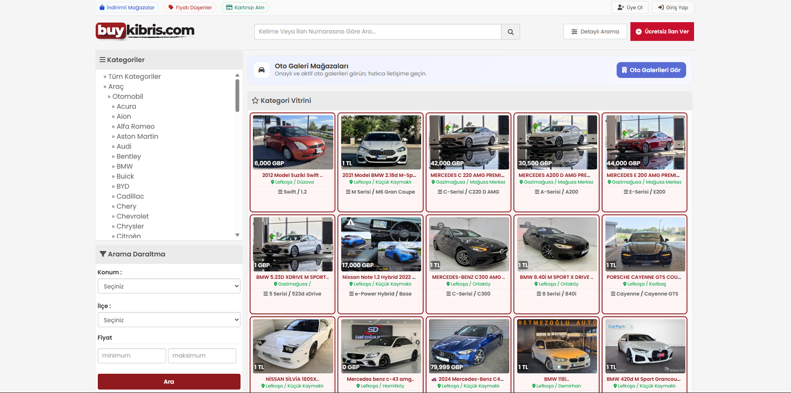 BuyKibris.com için geliştirilen bu yazılım; ilan yayınlama ve yönetimi, kategori hiyerarşisi, özel alanlar (dinamik form alanları), kullanıcı/rol bazlı yetkilendirme ve paketleme yapısı üzerine kurgulanmış kapsamlı bir web uygulamasıdır.