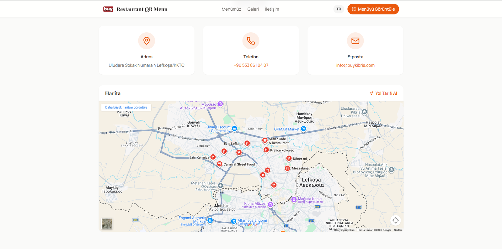 Hızlı & Mobil Uyumlu Arayüz: Menü ekranı telefonlarda akıcı çalışır, kullanıcıyı yormaz.