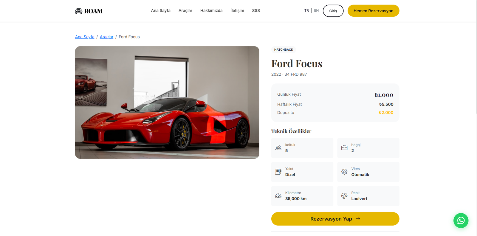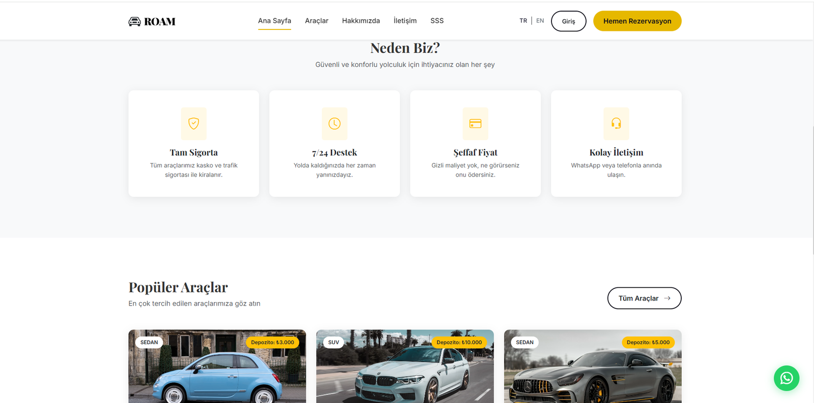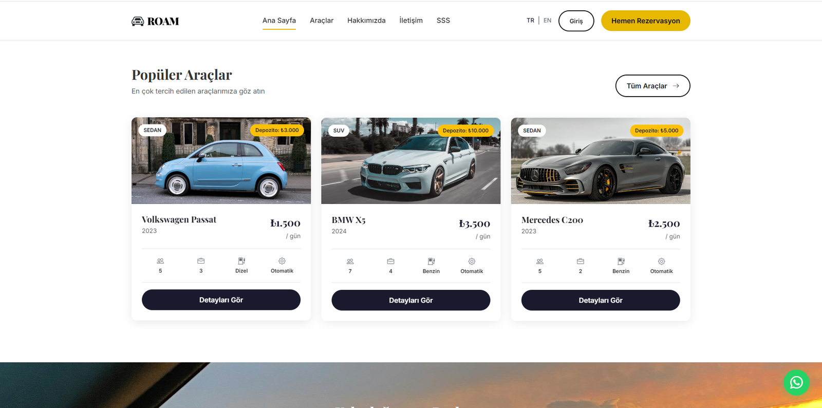 Modern & Mobil Uyumlu Ön Panel: Hızlı arama/filtreleme ile araçları kolayca bulma deneyimi.